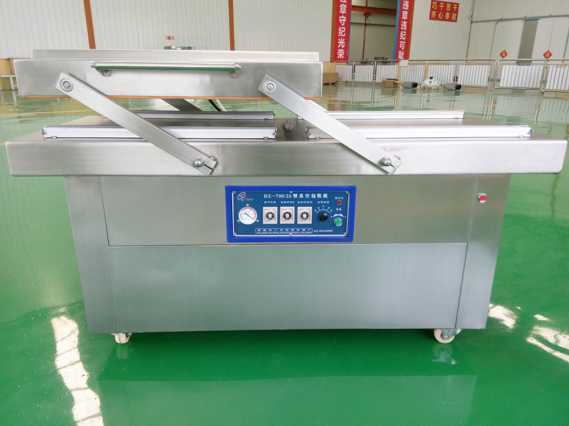 4、其中DZ-500/2S、DZ-600/2S、DZ-400/2S、DZ-600/2S全自動、DZ-800/2S全自動采用四連桿結構,有一個輪番工作的上工作室進行兩個工位的作業(yè),操作方便,效率高,節(jié)約能源。
